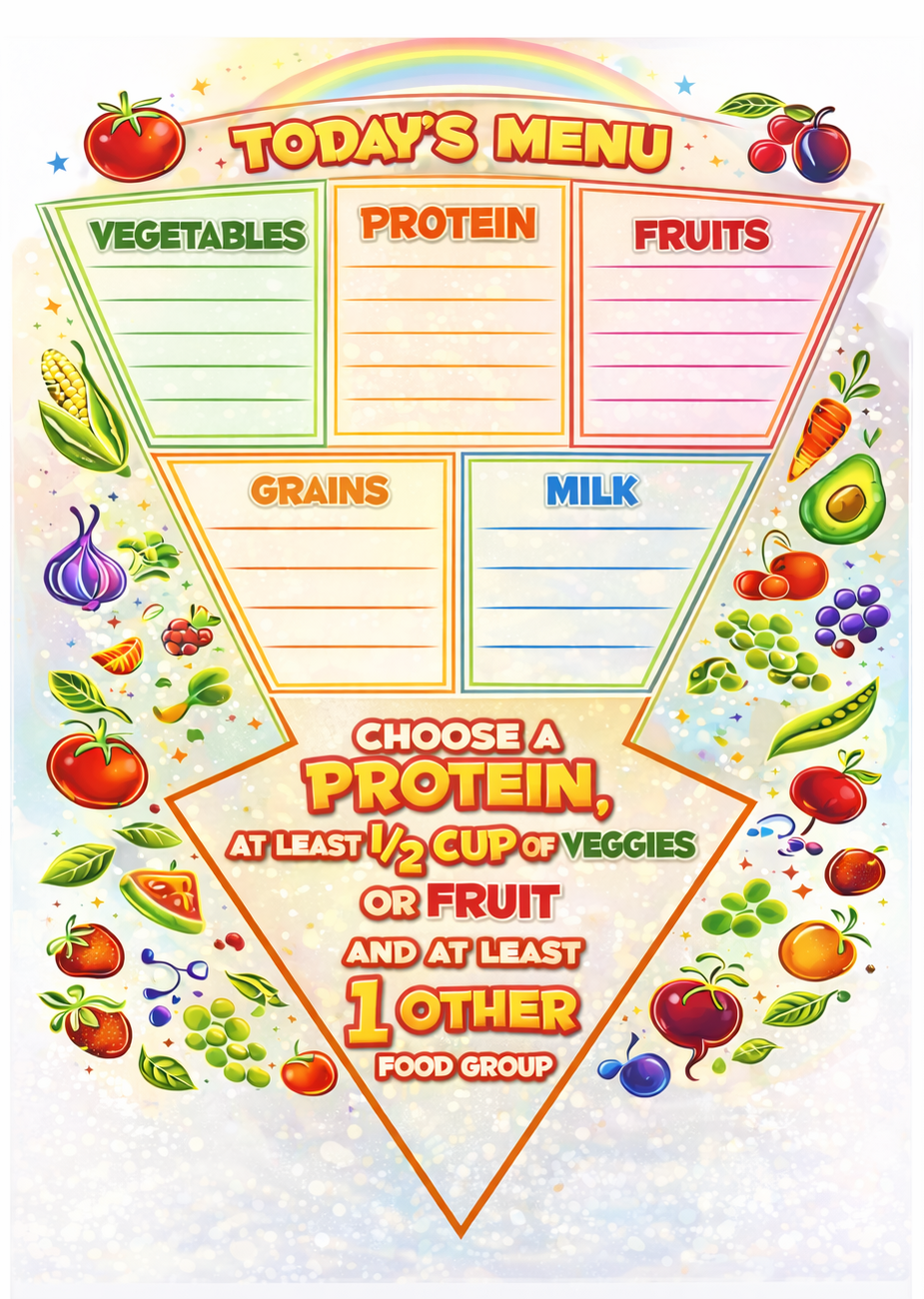 AmeriPlate™ builds on what students already recognize while aligning with today’s emphasis on real foods and simple meal-construction cues: